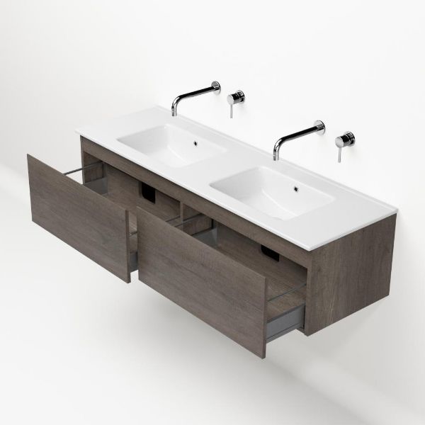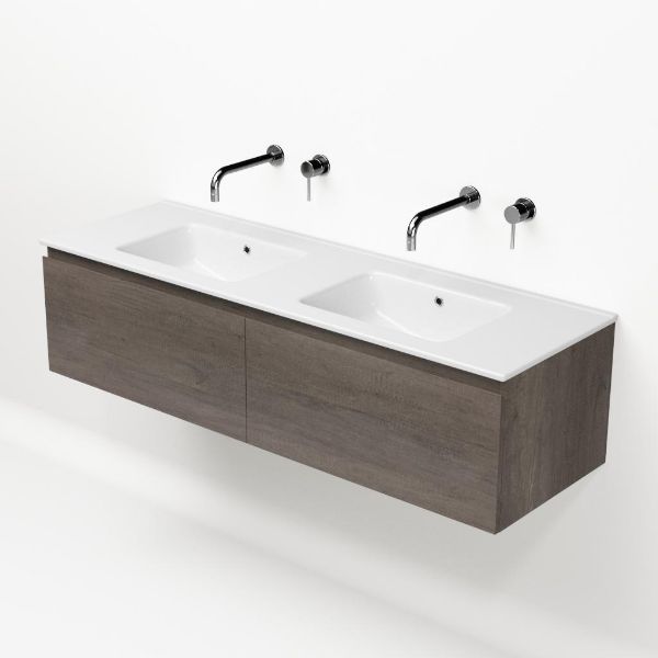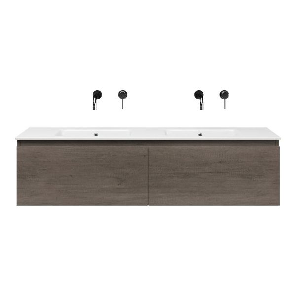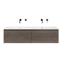 | | Bellanti Solo/Etna badmeubel 140x46 2 softclose laden olm donker grijs greeploos keramische wastafel dubbel wit zonder kraangat |