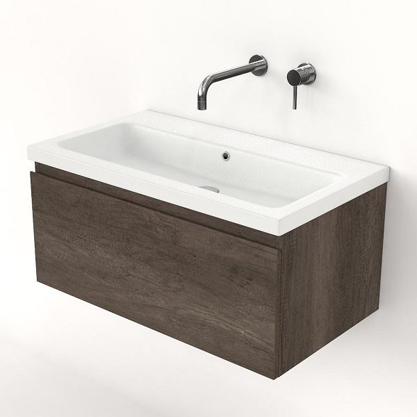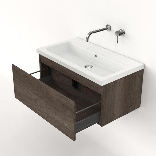 | Bellanti Solo/Amelia badmeubel 80x46 1 softclose lade olm donker grijs greeploos keramische wastafel wit mat zonder kraangaten |