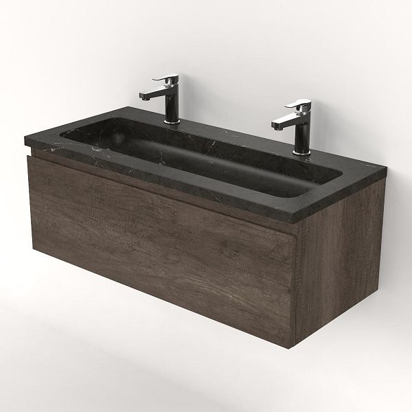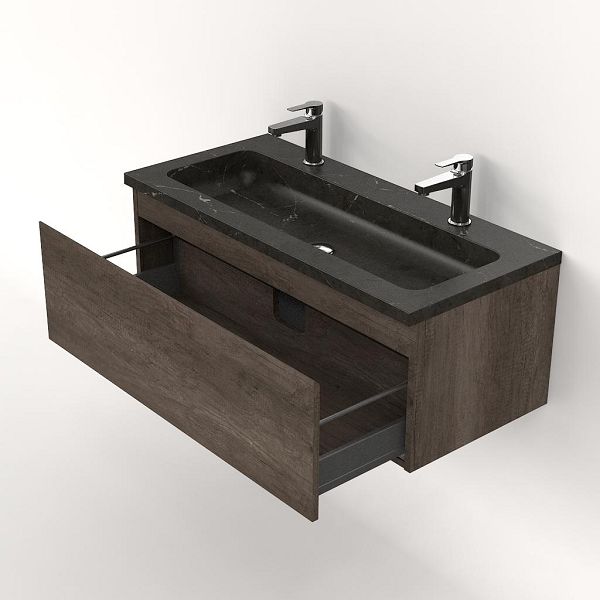 | Bellanti Solo/Square badmeubel 100x46 1 softclose lade olm donker grijs greeploos natuursteen wastafel blue stone met 2 kraangaten |