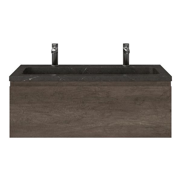 | | Bellanti Solo/Square badmeubel 100x46 1 softclose lade olm donker grijs greeploos natuursteen wastafel blue stone met 2 kraangaten |