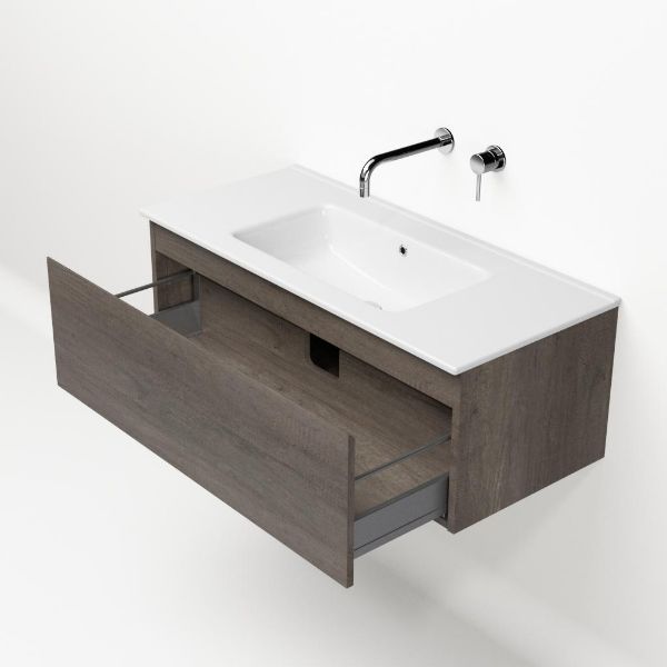 | | Bellanti Solo/Etna badmeubel 100x46 1 softclose lade olm donker grijs greeploos keramische wastafel wit zonder kraangaten |