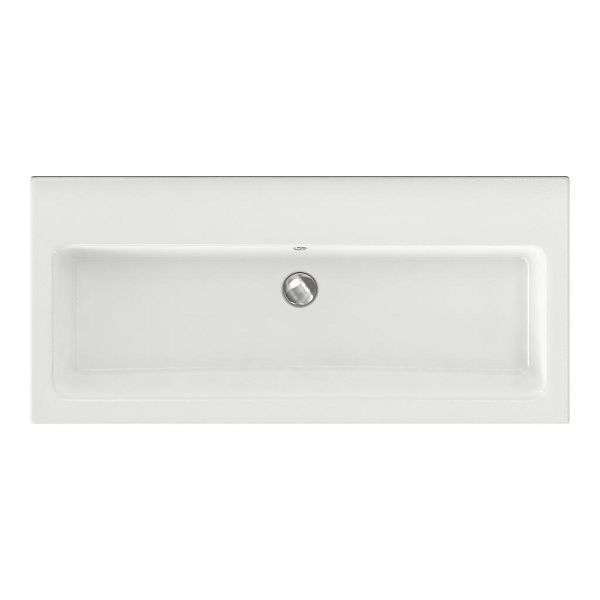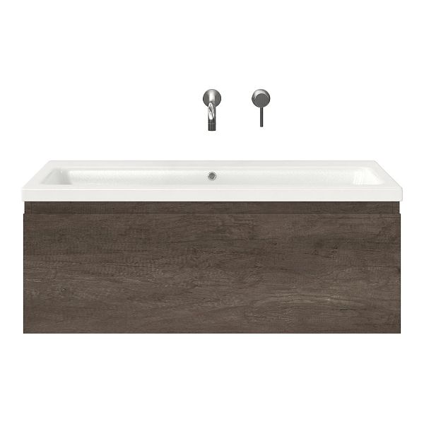 Greeploos badkamermeubel in de kleur olm donker grijs is 100 cm breed. De wastafel is vervaardig in keramiek en heeft de kleur wit keramiek. Dit badkamermeubel met deze wastafel is leverbaar tussen de 60 cm t/m 140 cm