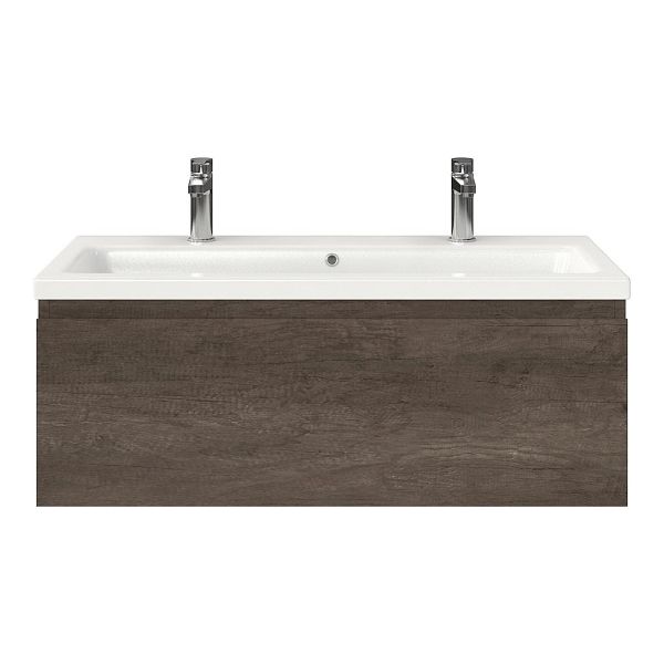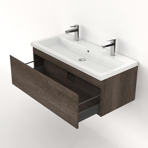 | | Bellanti Solo/Amelia badmeubel 100x46 1 softclose lade olm donker grijs greeploos keramische wastafel wit glans met 2 kraangaten |