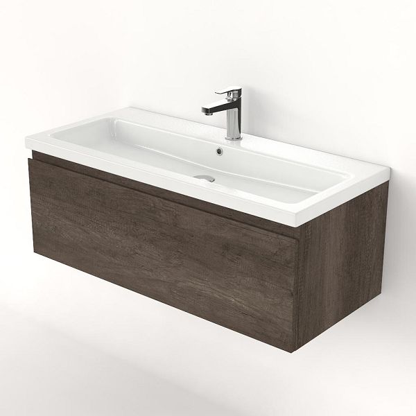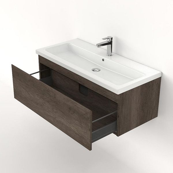 | | Bellanti Solo/Amelia badmeubel 100x46 1 softclose lade olm donker grijs greeploos keramische wastafel wit glans met 1 kraangat |