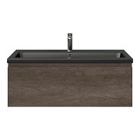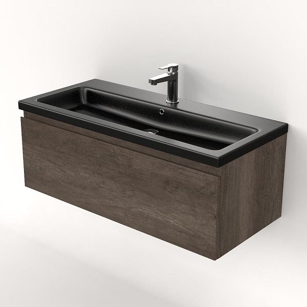 | Bellanti Solo/Amelia badmeubel 100x46 1 softclose lade olm donker grijs greeploos keramische wastafel zwart mat met 1 kraangat |