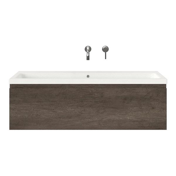 Greeploos badkamermeubel in de kleur olm donker grijs is 120 cm breed. De wastafel is vervaardig in keramiek en heeft de kleur wit mat keramiek. Dit badkamermeubel met deze wastafel is leverbaar tussen de 60 cm t/m 140 cm