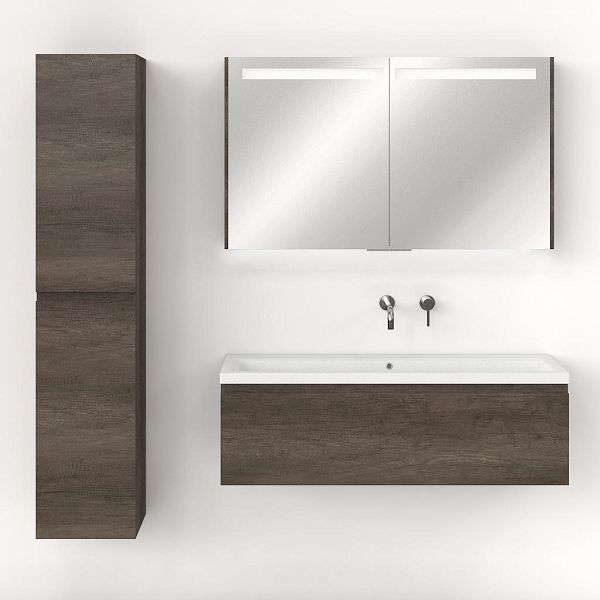 | Bellanti Solo /Amelia badmeubel 120x46 1 softclose lade olm donker grijs greeploos keramische wastafel wit mat zonder kraangaten |