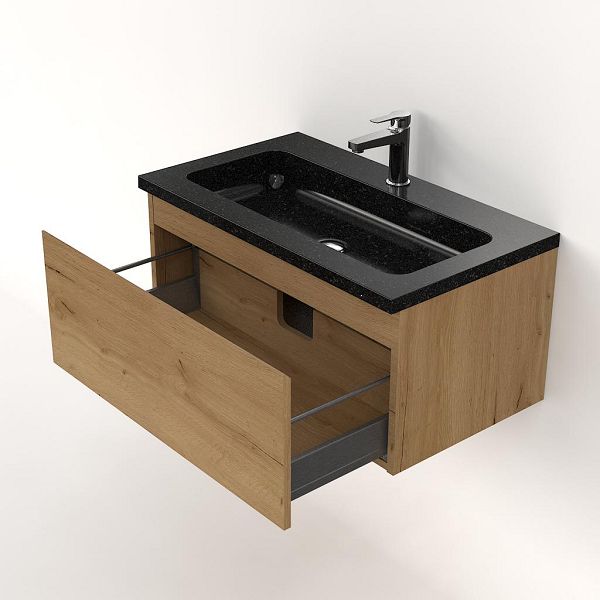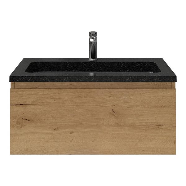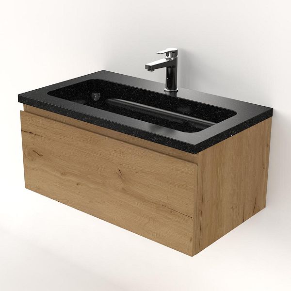 | | Bellanti Solo/Square badmeubel 80x46 1 softclose lade eiken natuur greeploos natuursteen wastafel shanxi black met 1 kraangat |