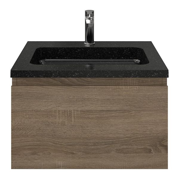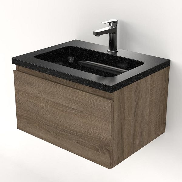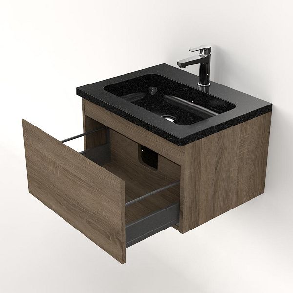 | | Bellanti Solo/Square badmeubel 60x46 1 softclose lade eiken donker greeploos natuursteen wastafel shanxi black met 1 kraangat |
