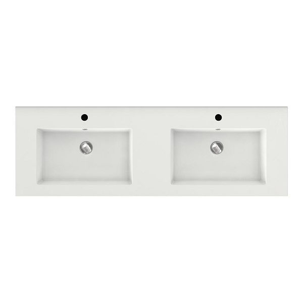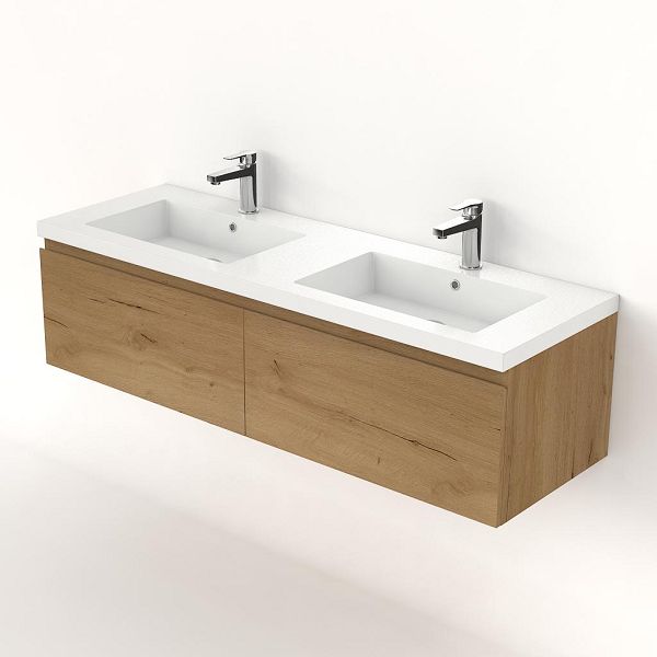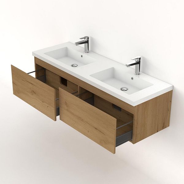 | | Bellanti Solo/Esta badmeubel 140x46 2 softclose laden eiken natuur greeploos polystone wastafel dubbel wit met 2 kraangaten |