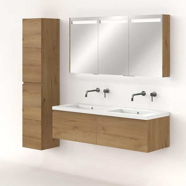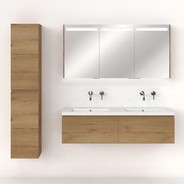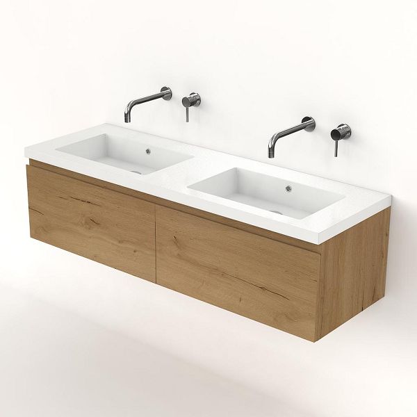 | | Bellanti Solo/Esta badmeubel 140x46 2 softclose laden eiken natuur greeploos polystone wastafel dubbel wit zonder kraangaten |