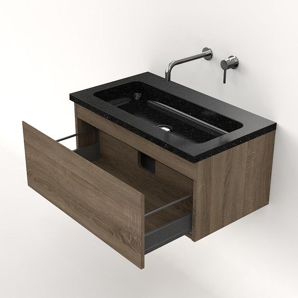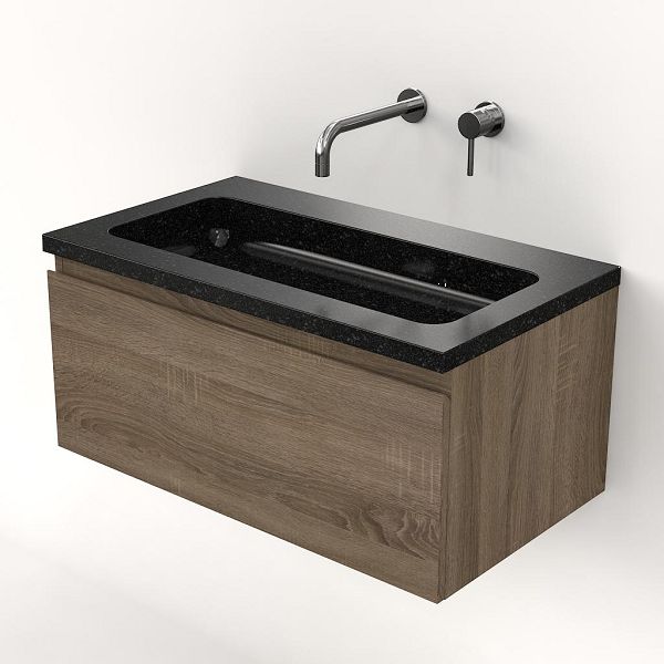 | Bellanti Solo/Square badmeubel 80x46 1 softclose lade eiken donker greeploos natuursteen wastafel shanxi black zonder kraangaten |