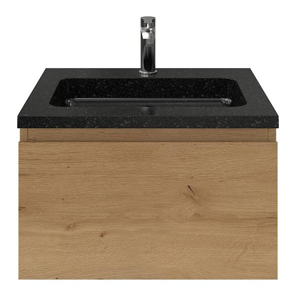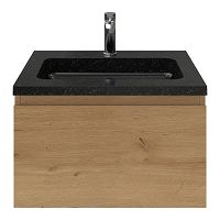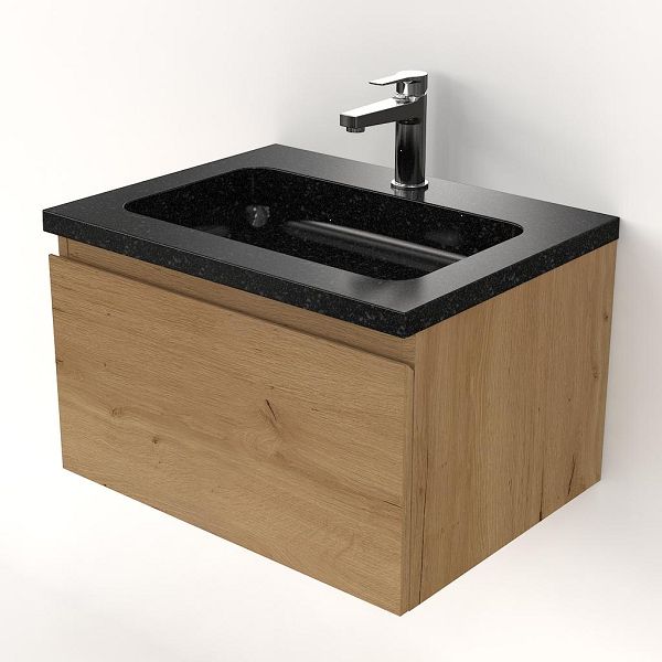 | | Bellanti Solo/Square badmeubel 60x46 1 softclose lade eiken natuur greeploos natuursteen wastafel shanxi black met 1 kraangat |