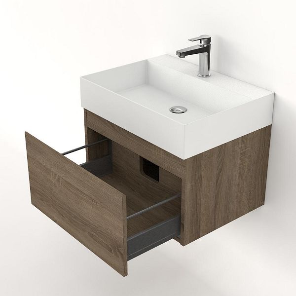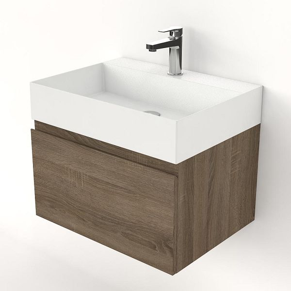 | | Bellanti Solo/Azzurra badmeubel 60x46 1 softclose lade eiken donker greeploos keramische wastafel wit mat met 1 kraangat |