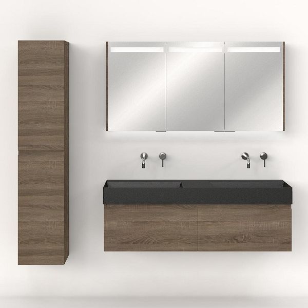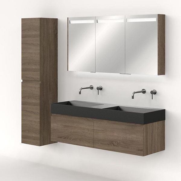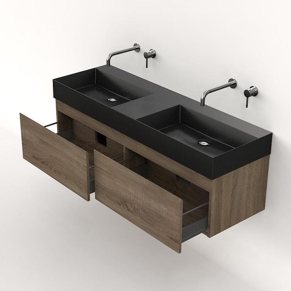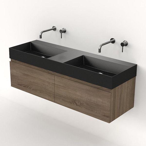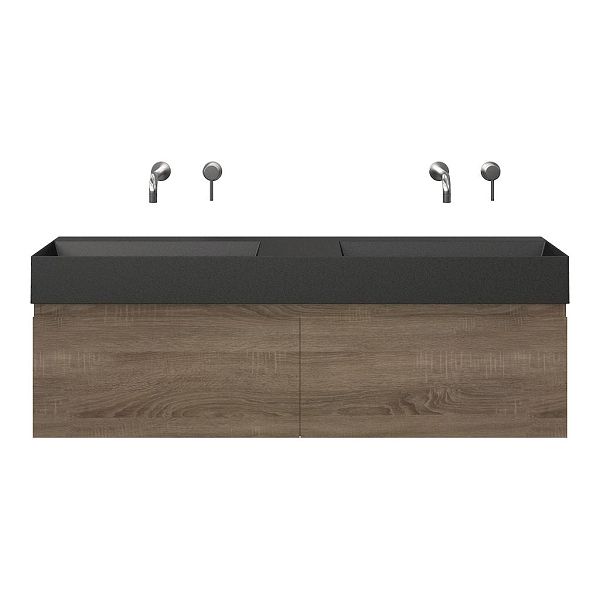 | Bellanti Solo/Azzurra badmeubel 140x46 2 softclose laden eiken donker greeploos keramische wastafel dubbel antraciet mat zonder kraangaten |