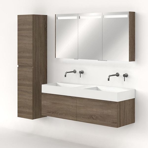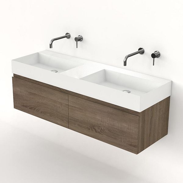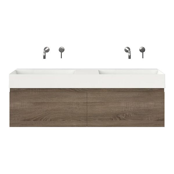 | Bellanti Solo/Azzurra badmeubel 140x46 2 softclose laden eiken donker greeploos keramische wastafel dubbel wit glans zonder kraangaten |