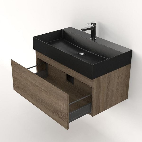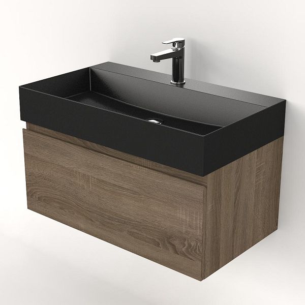Bellanti Solo/Azzurra badmeubel 80x46 1 softclose lade eiken donker greeploos keramische wastafel antraciet mat met 1 kraangat