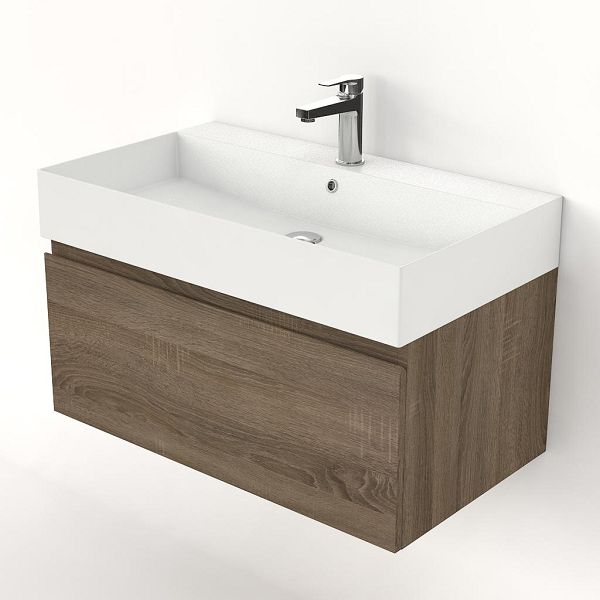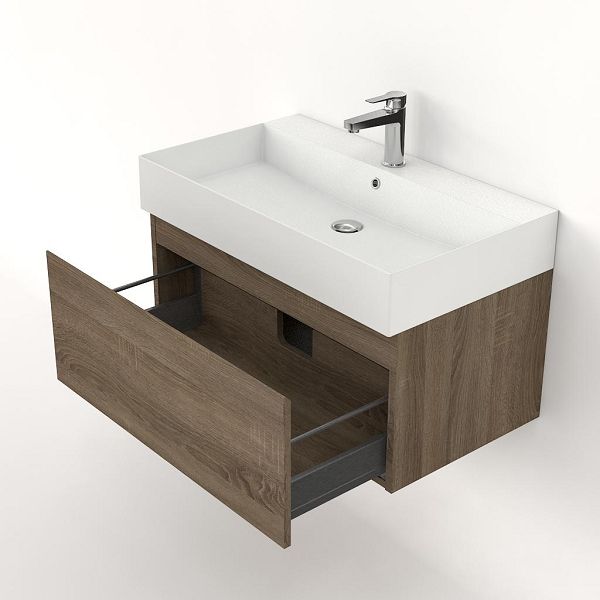 | | Bellanti Solo/Azzurra badmeubel 80x46 1 softclose lade eiken donker greeploos keramische wastafel wit mat met 1 kraangat |