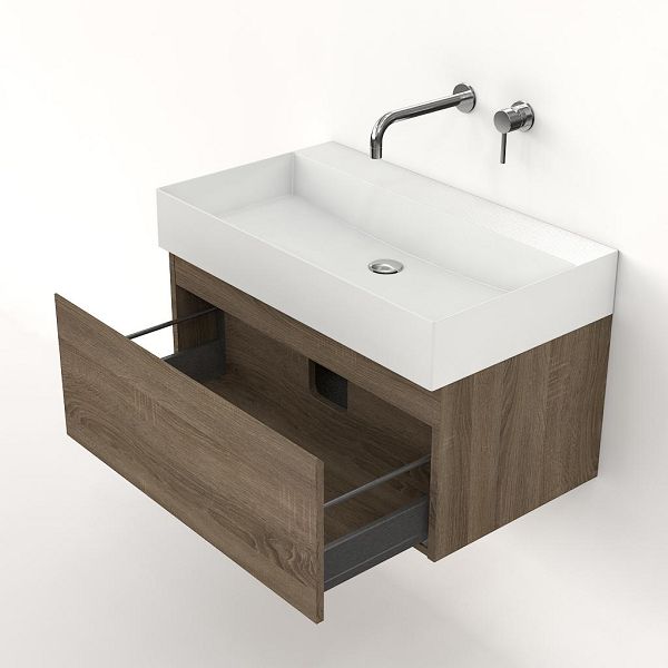 | | Bellanti Solo/Azzurra badmeubel 80x46 1 softclose lade eiken donker greeploos keramische wastafel wit glans zonder kraangaten |