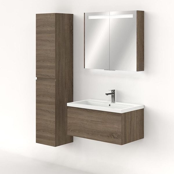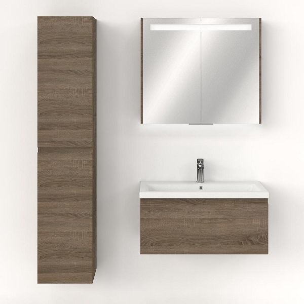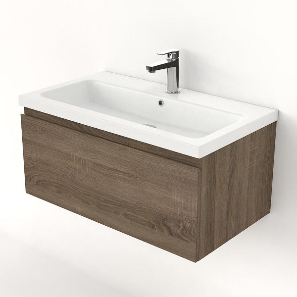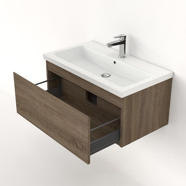 | Bellanti Solo/Amelia badmeubel 80x46 1 softclose lade eiken donker greeploos keramische wastafel wit glans mat 1 kraangat |