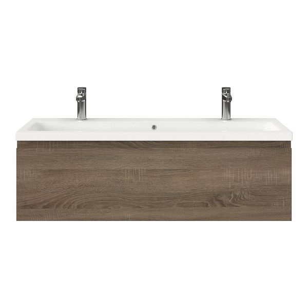 | Bellanti Solo /Amelia badmeubel 120x46 1 softclose lade eiken donker greeploos keramische wastafel wit mat met 2 kraangaten |