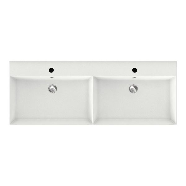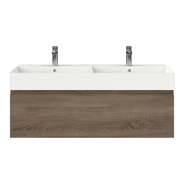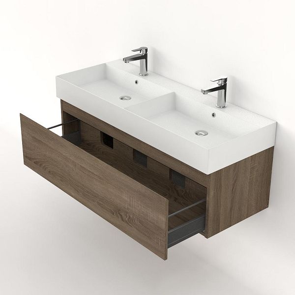 | | Bellanti Solo /Azzurra badmeubel 120x46 1 softclose lade eiken donker greeploos keramische wastafel dubbel wit mat met 2 kraangaten |