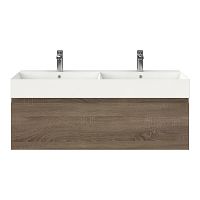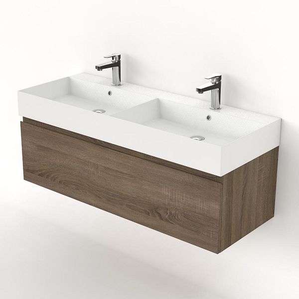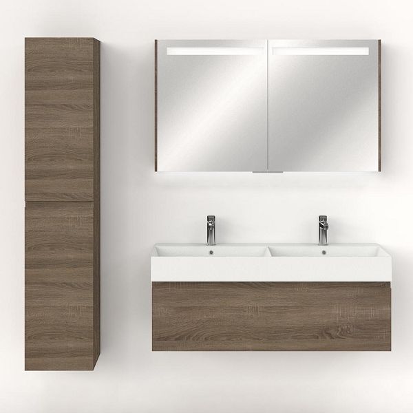 | Bellanti Solo /Azzurra badmeubel 120x46 1 softclose lade eiken donker greeploos keramische wastafel dubbel wit mat met 2 kraangaten |
