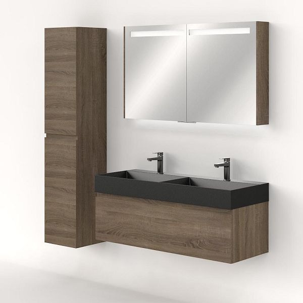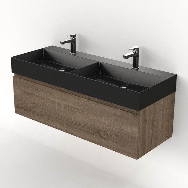 | | Bellanti Solo /Azzurra badmeubel 120x46 1 softclose lade eiken donker greeploos keramische wastafel dubbel antraciet mat met 2 kraangaten |