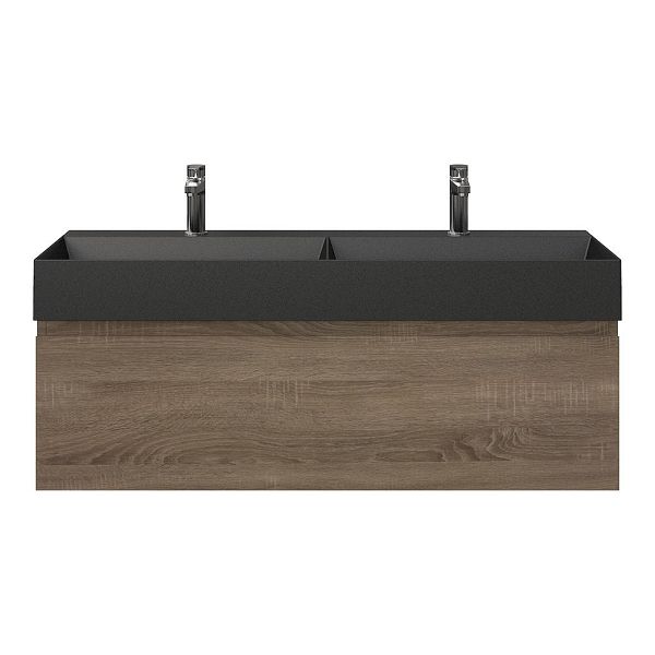 | Bellanti Solo /Azzurra badmeubel 120x46 1 softclose lade eiken donker greeploos keramische wastafel dubbel antraciet mat met 2 kraangaten |
