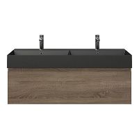 Bellanti Solo /Azzurra badmeubel 120x46 1 softclose lade eiken donker greeploos keramische wastafel dubbel antraciet mat met 2 kraangaten
