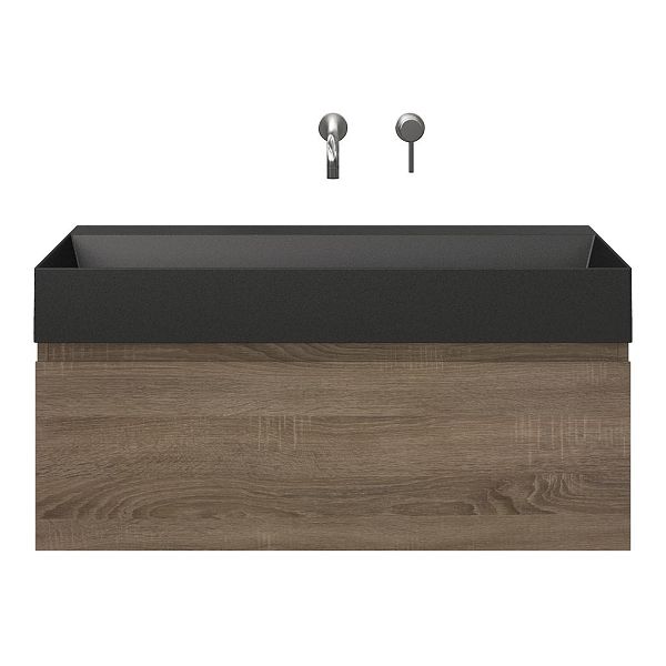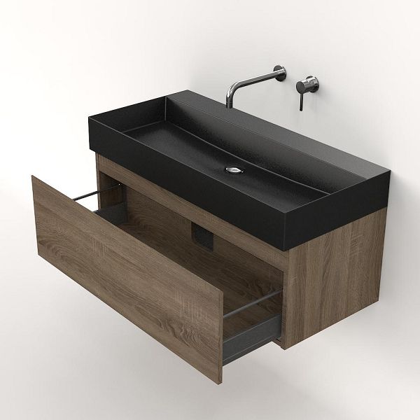 | | Bellanti Solo/Azzurra badmeubel 100x46 1 softclose lade eiken donker greeploos keramische wastafel antraciet mat zonder kraangaten |