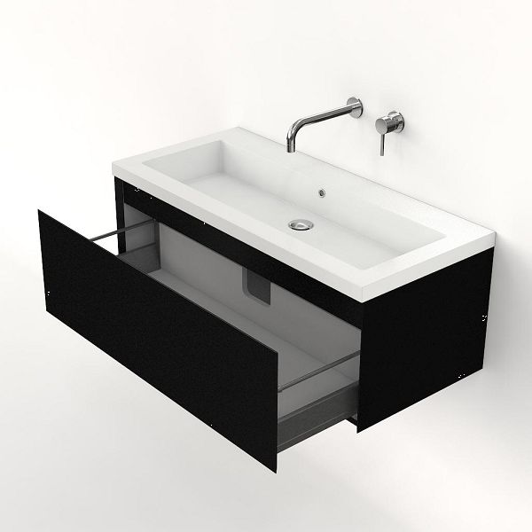| | Bellanti Solo/Esta badmeubel 100x46 1 softclose lade zwart mat greeploos polystone wastafel wit zonder kraangaten |