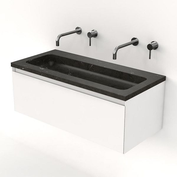 | | Bellanti Solo/Square badmeubel 100x46 1 softclose lade wit mat greeploos natuursteen wastafel blue stone zonder kraangaten |