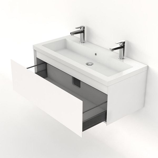 | | Bellanti Solo/Esta badmeubel 100x46 1 softclose lade wit mat greeploos polystone wastafel wit met 2 kraangaten |