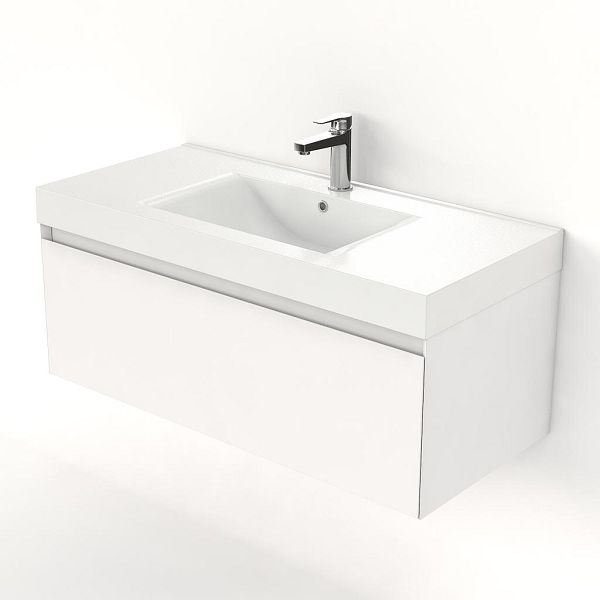 | Bellanti Solo/Wave badmeubel 100x46 1 softclose lade wit mat greeploos polystone wastafel wit met 1 kraangat |