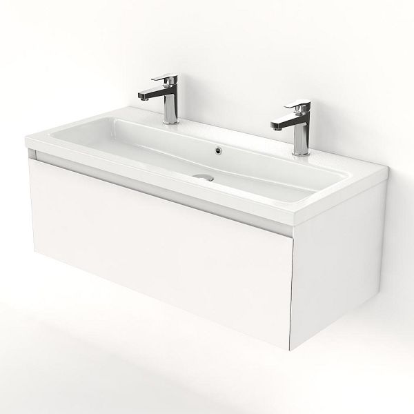 | | Bellanti Solo/Amelia badmeubel 100x46 1 softclose lade wit mat greeploos keramische wastafel wit glans met 2 kraangaten |