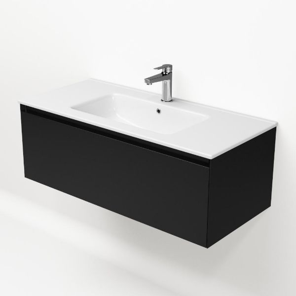 | | Bellanti Solo/Etna badmeubel 100x46 1 softclose lade zwart mat greeploos keramische wastafel wit met 1 kraangat |
