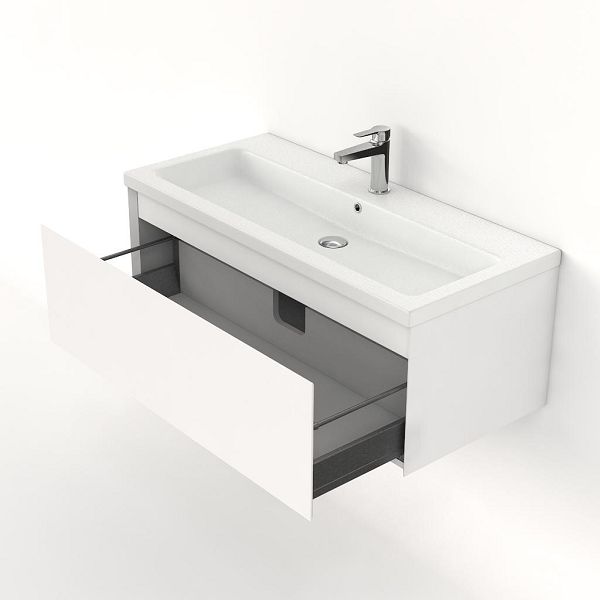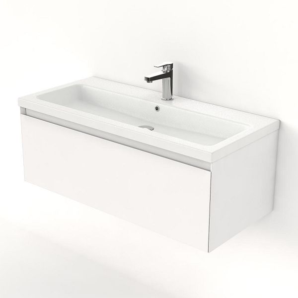 | | Bellanti Solo/Amelia badmeubel 100x46 1 softclose lade wit mat greeploos keramische wastafel wit mat met 1 kraangat |