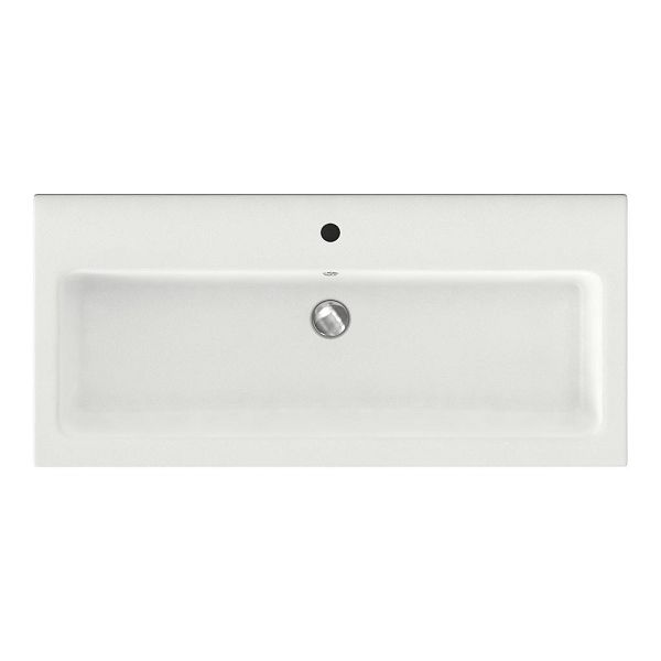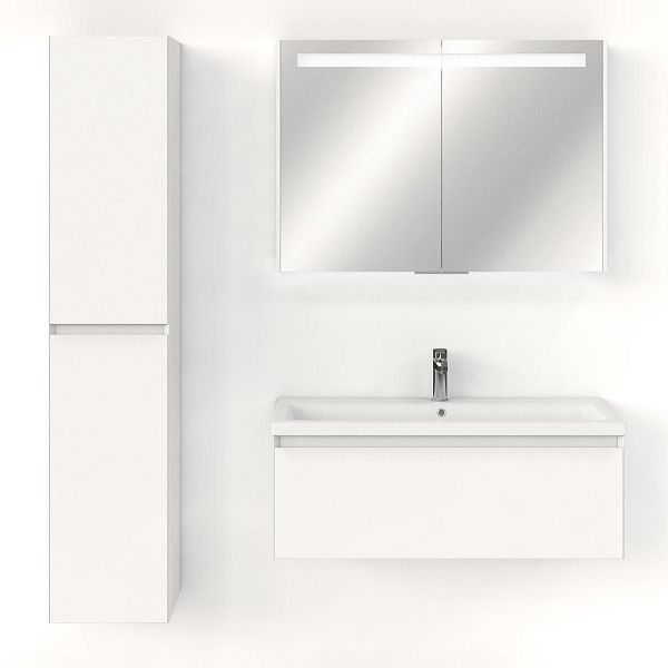 Greeploos badkamermeubel in de kleur wit mat is 100 cm breed. De wastafel is vervaardig in keramiek en heeft de kleur wit mat keramiek. Dit badkamermeubel met deze wastafel is leverbaar tussen de 60 cm t/m 140 cm