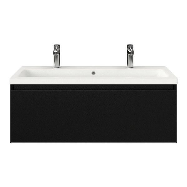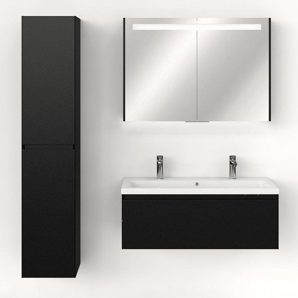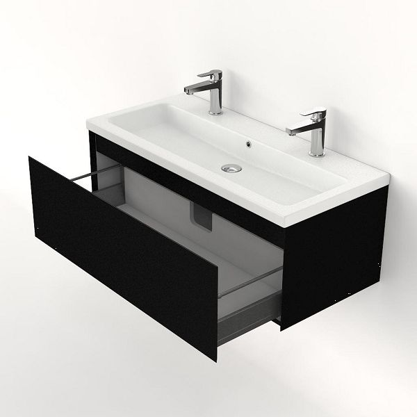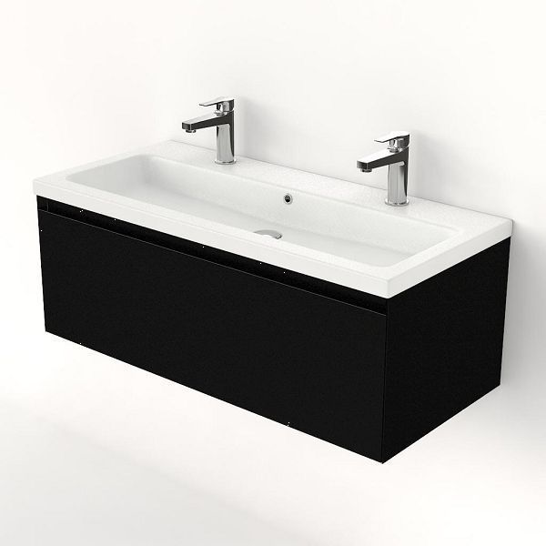 | Bellanti Solo/Amelia badmeubel 100x46 1 softclose lade zwart mat greeploos keramische wastafel wit mat met 2 kraangaten |