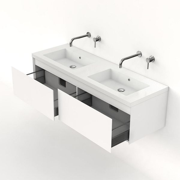 | Bellanti Solo/Esta badmeubel 140x46 2 softclose laden wit mat greeploos polystone wastafel dubbel wit zonder kraangaten |