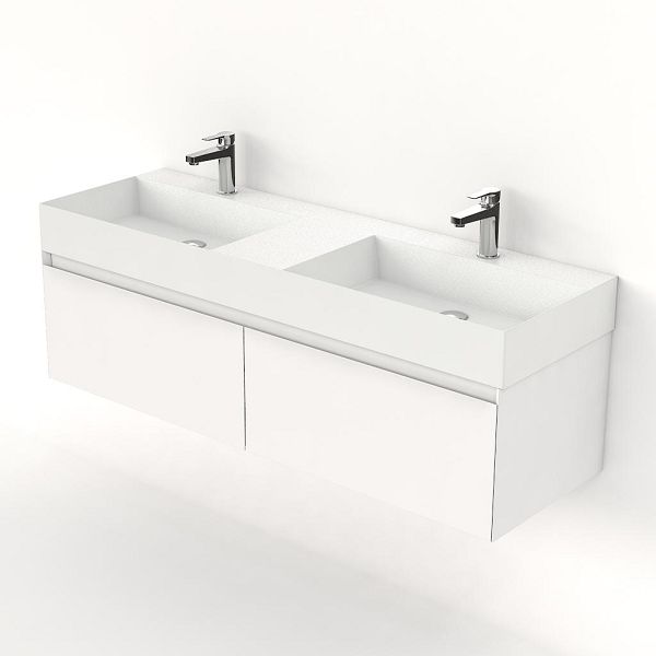 | Bellanti Solo/Azzurra badmeubel 140x46 2 softclose laden wit mat greeploos keramische wastafel dubbel wit mat met 2 kraangaten |