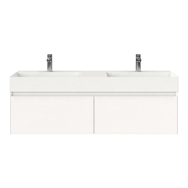 | | Bellanti Solo/Azzurra badmeubel 140x46 2 softclose laden wit mat greeploos keramische wastafel dubbel wit mat met 2 kraangaten |