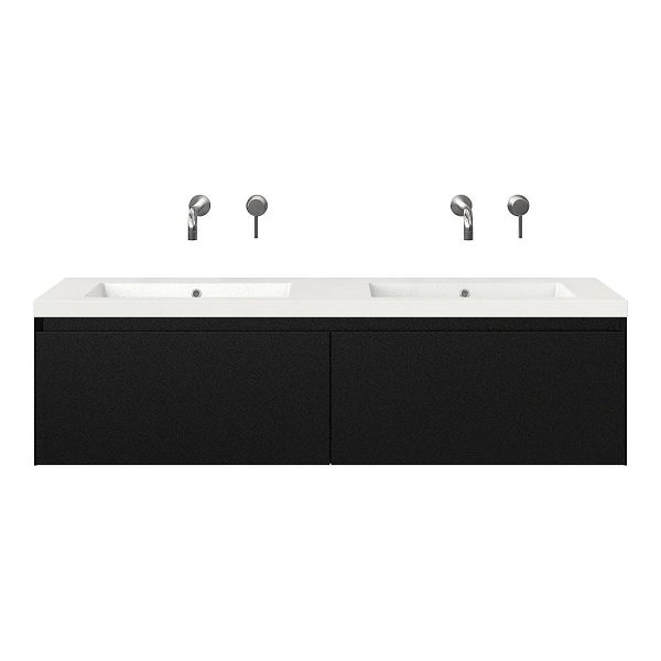 | | Bellanti Solo/Esta badmeubel 140x46 2 softclose laden zwart mat greeploos polystone wastafel dubbel wit zonder kraangaten |
