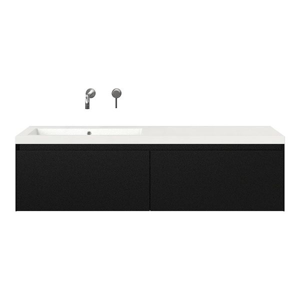 | | Bellanti Solo/Esta badmeubel 140x46 2 softclose laden zwart mat greeploos polystone wastafel wit zonder kraangaten |