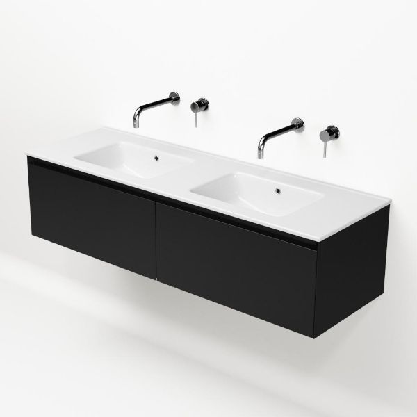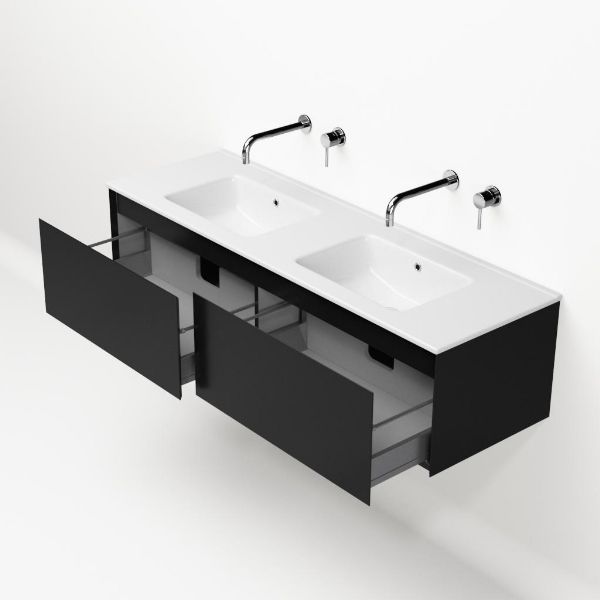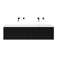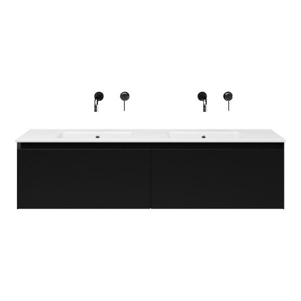 | | Bellanti Solo/Etna badmeubel 140x46 2 softclose laden zwart mat greeploos keramische wastafel dubbel wit zonder kraangat |