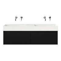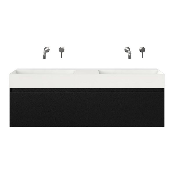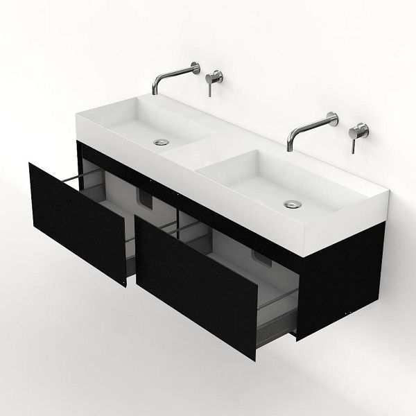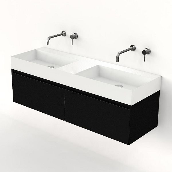 | | Bellanti Solo/Azzurra badmeubel 140x46 2 softclose laden zwart mat greeploos keramische wastafel dubbel wit glans zonder kraangaten |