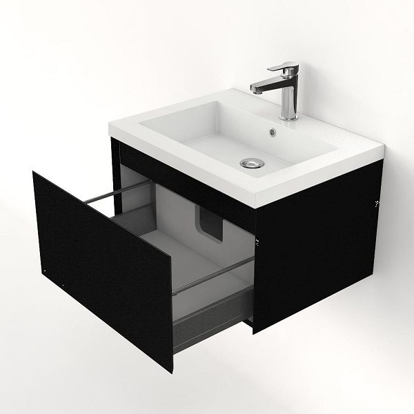 Bellanti Solo/Esta badmeubel 60x46 1 softclose lade zwart mat greeploos polystone wastafel wit met 1 kraangat