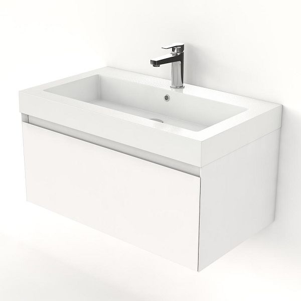 | Bellanti Solo/Esta badmeubel 80x46 1 softclose lade wit mat greeploos polystone wastafel wit met 1 kraangat |