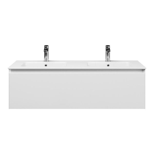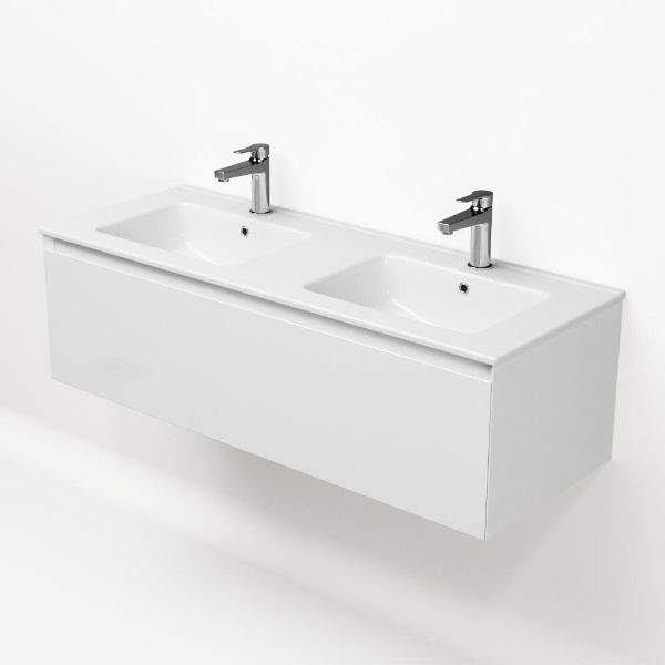 | | Bellanti Solo/Etna badmeubel 120x46 1 softclose lade wit hoogglans greeploos keramische wastafel dubbel wit met 2 kraangaten |